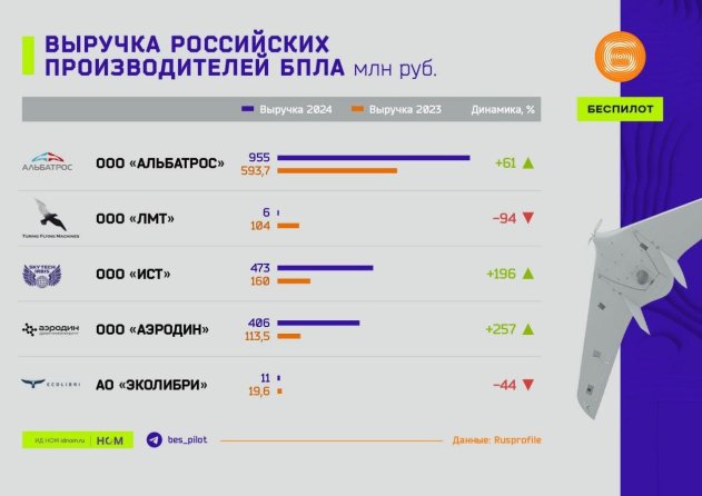 Телеграм-канал "Беспилот" проанализировал финансовую отчётность 5 компаний, выпускающих беспилотники для гражданского госзаказа (ГГЗ), и сравнил их выручку с прошлогодними показателями.